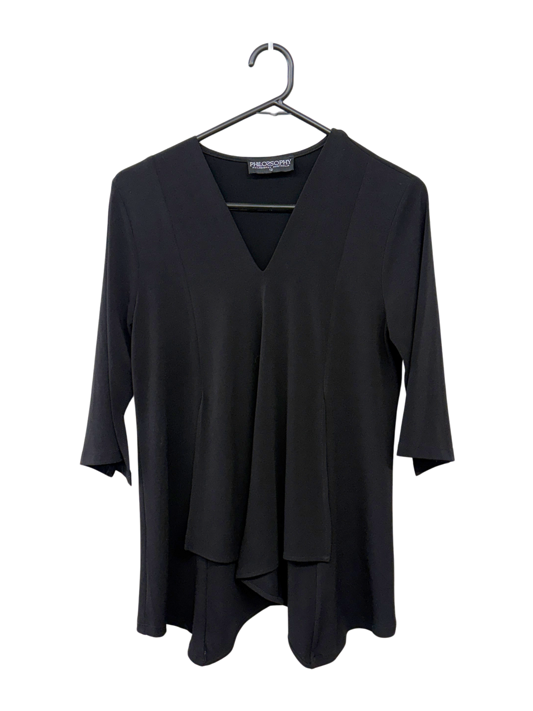 00s Black Half Sleeve Asymmetrical Tiered Blouse
