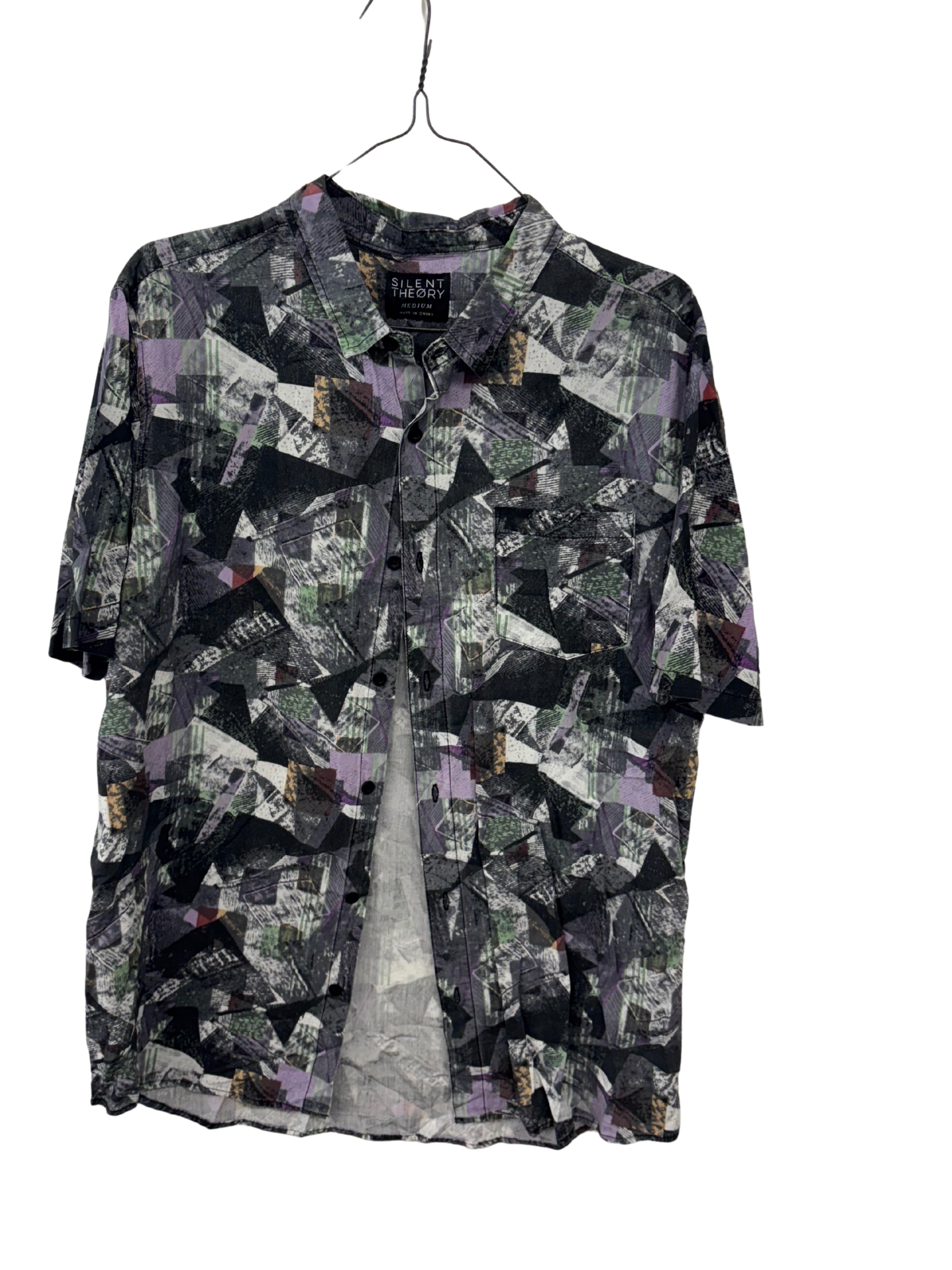 Grey, White, Purple Print Short Sleeve Button Up Shirt