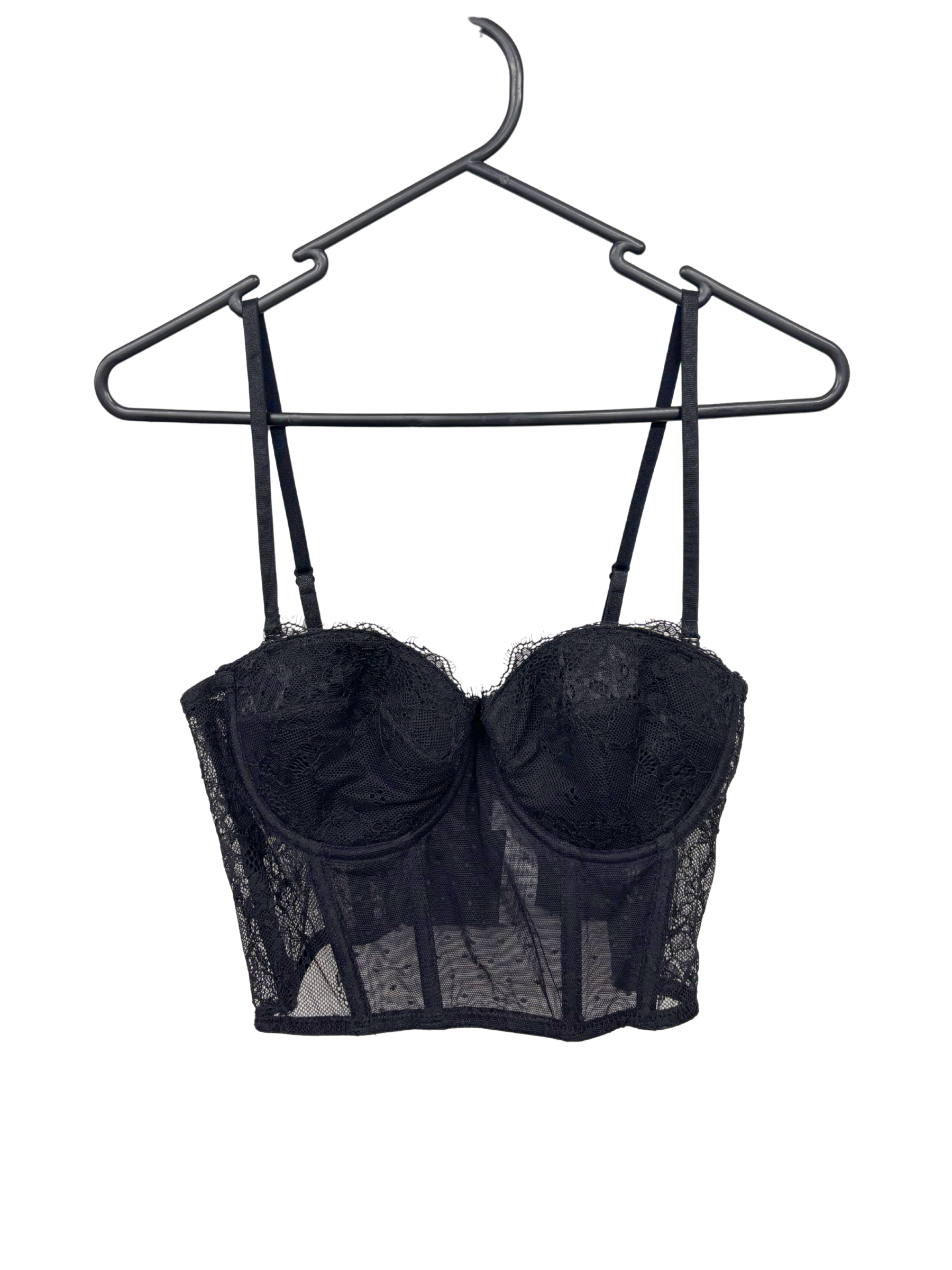 Black Lace Thin Strap Sheer Corset Top