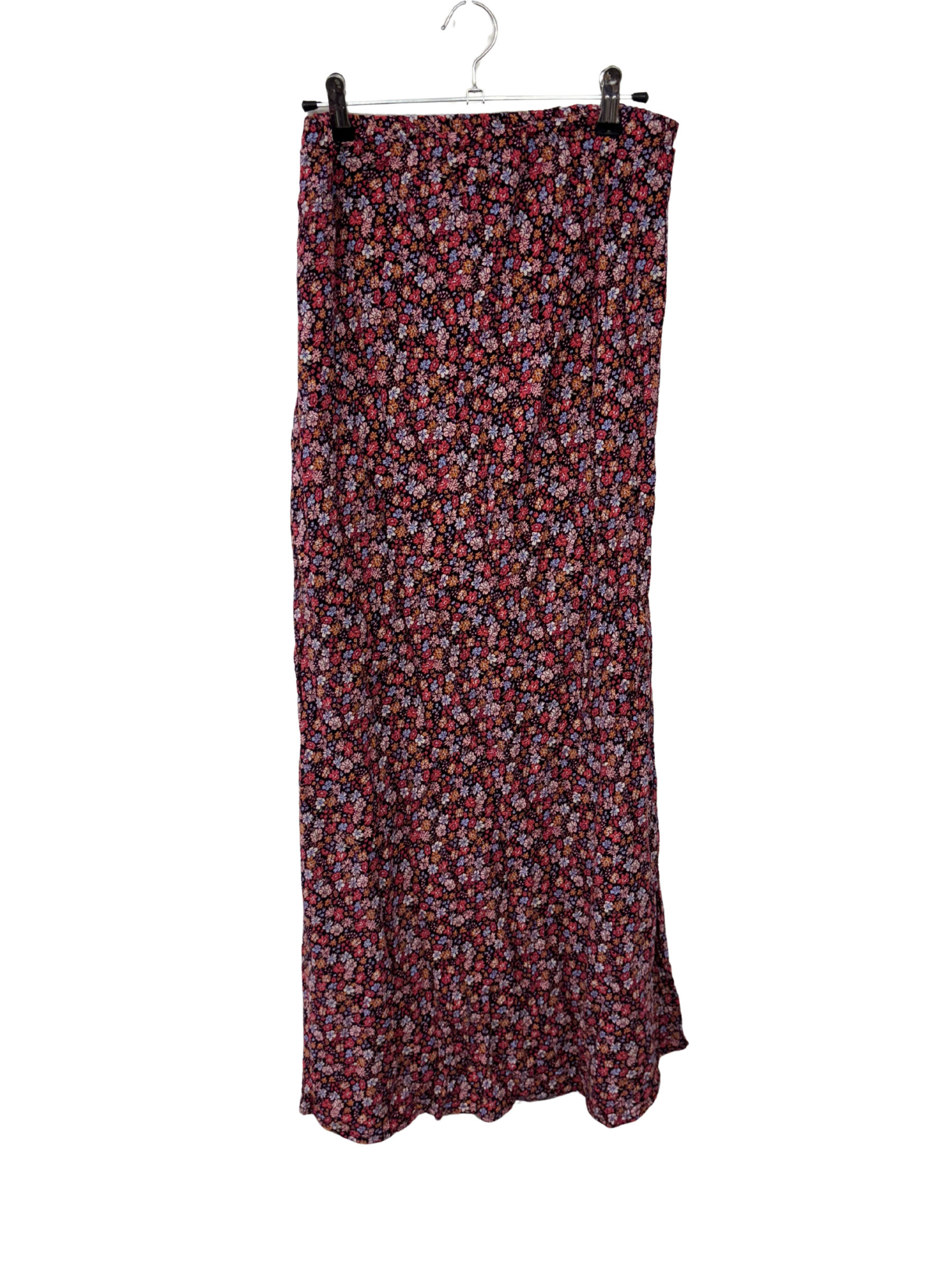 Black, Pink, Blue Floral Highwaisted Midi Slip Skirt