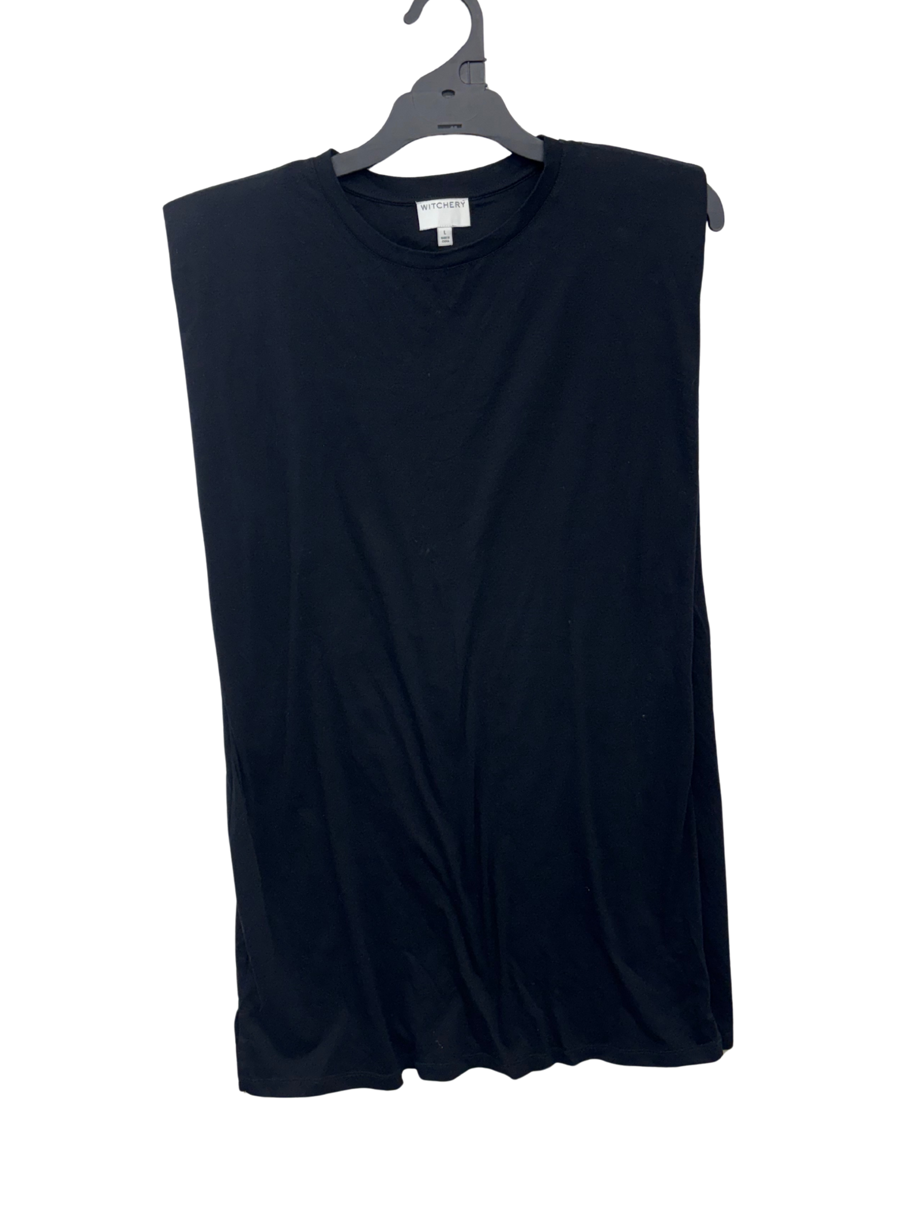 Black Sleeveless Knee Length Dress with Shoulder Pads