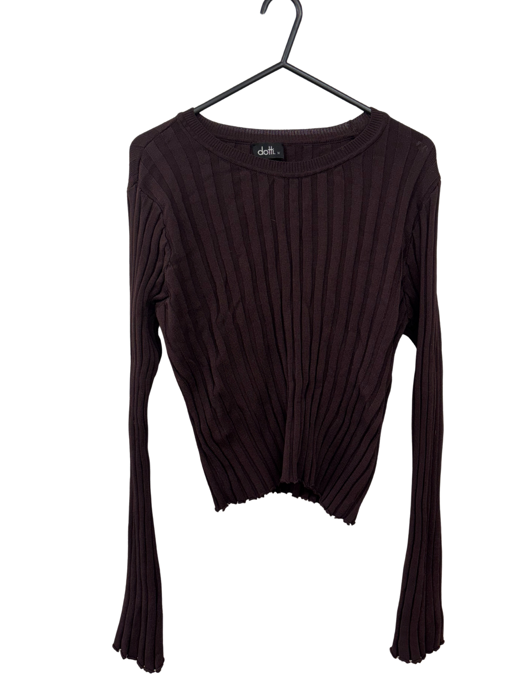 Brown Ribbed Long Sleeve Top