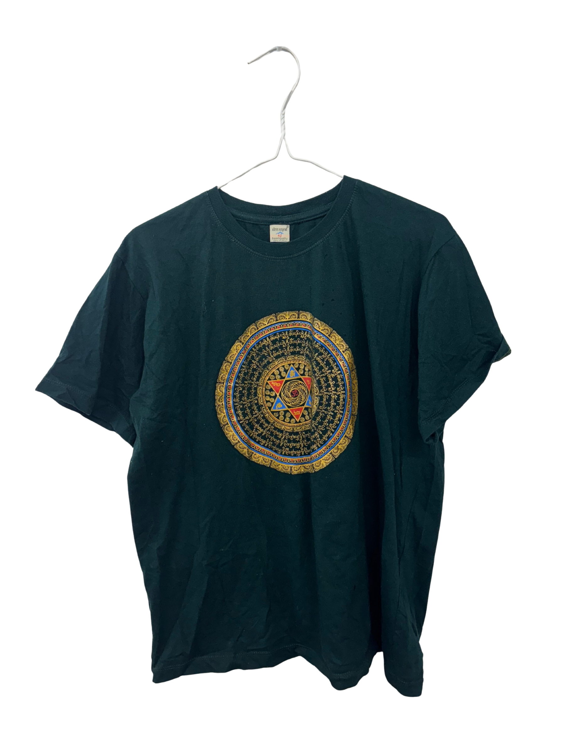 Dark Green Short Sleeve T Shirt with Gold Nepalese Mandala Logo