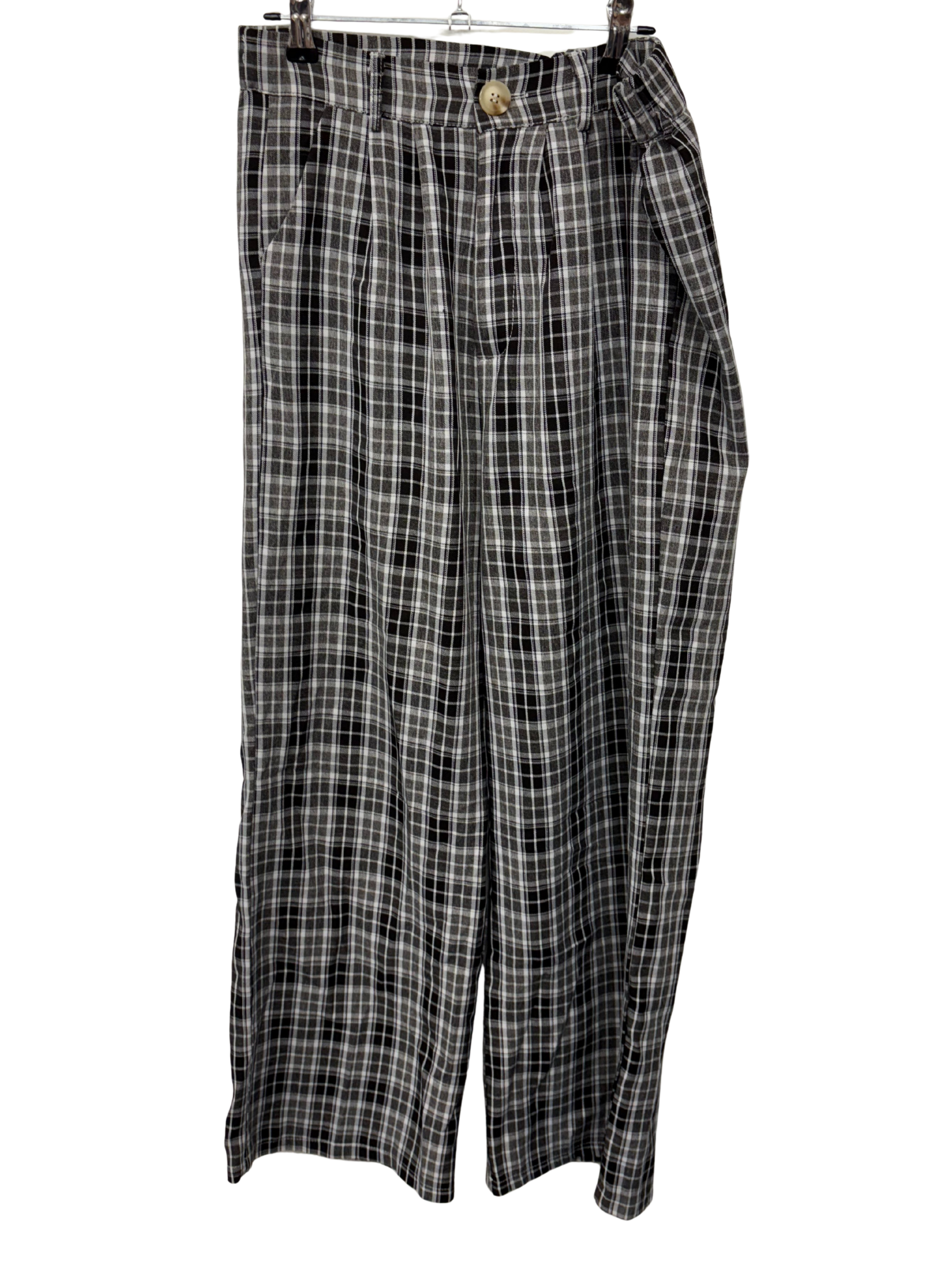 Grey, Black, White Check Highwaisted Straight Leg Pants
