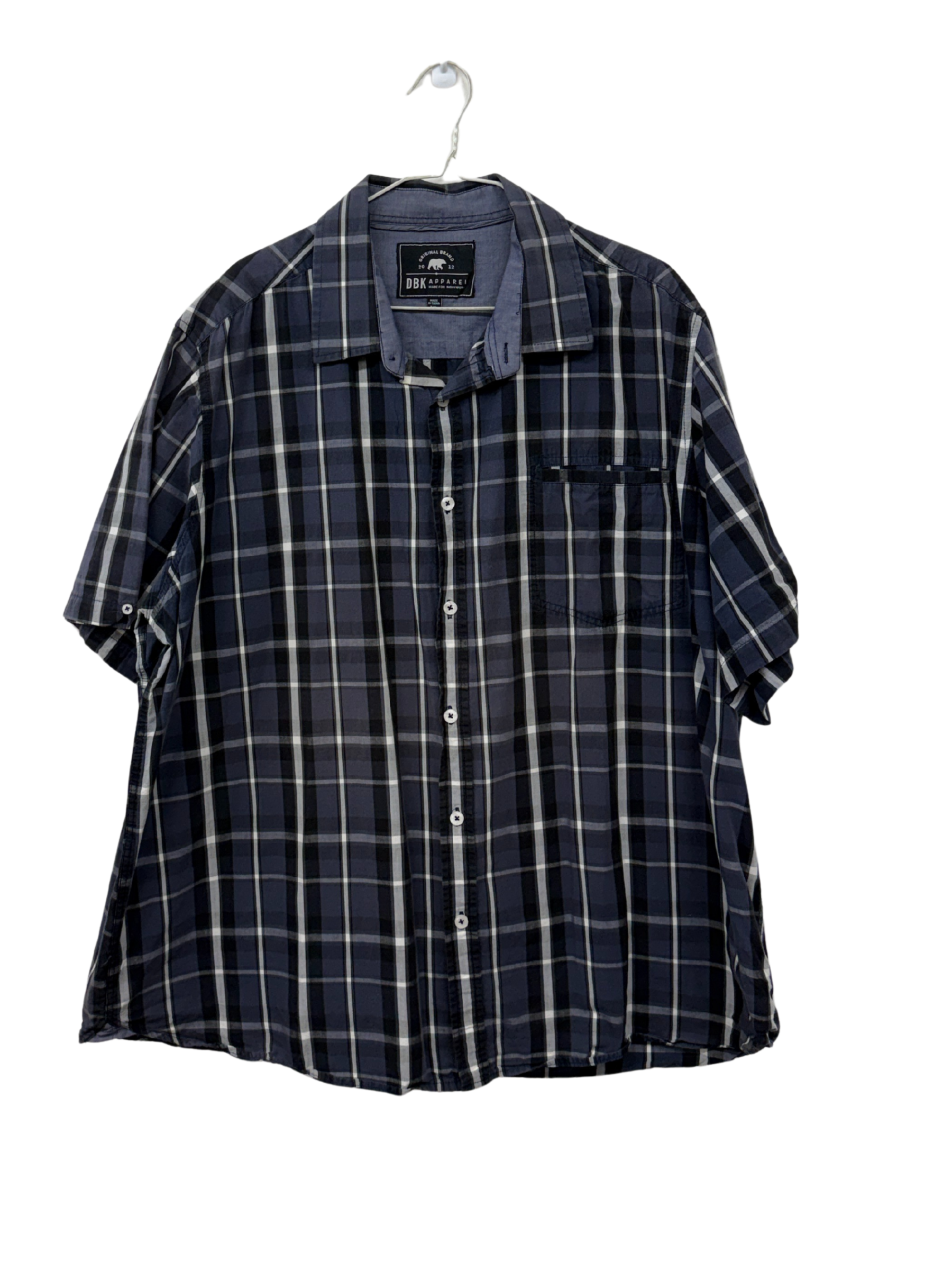 Navy, Black & White Plaid Short Sleeve Button Up Shirt