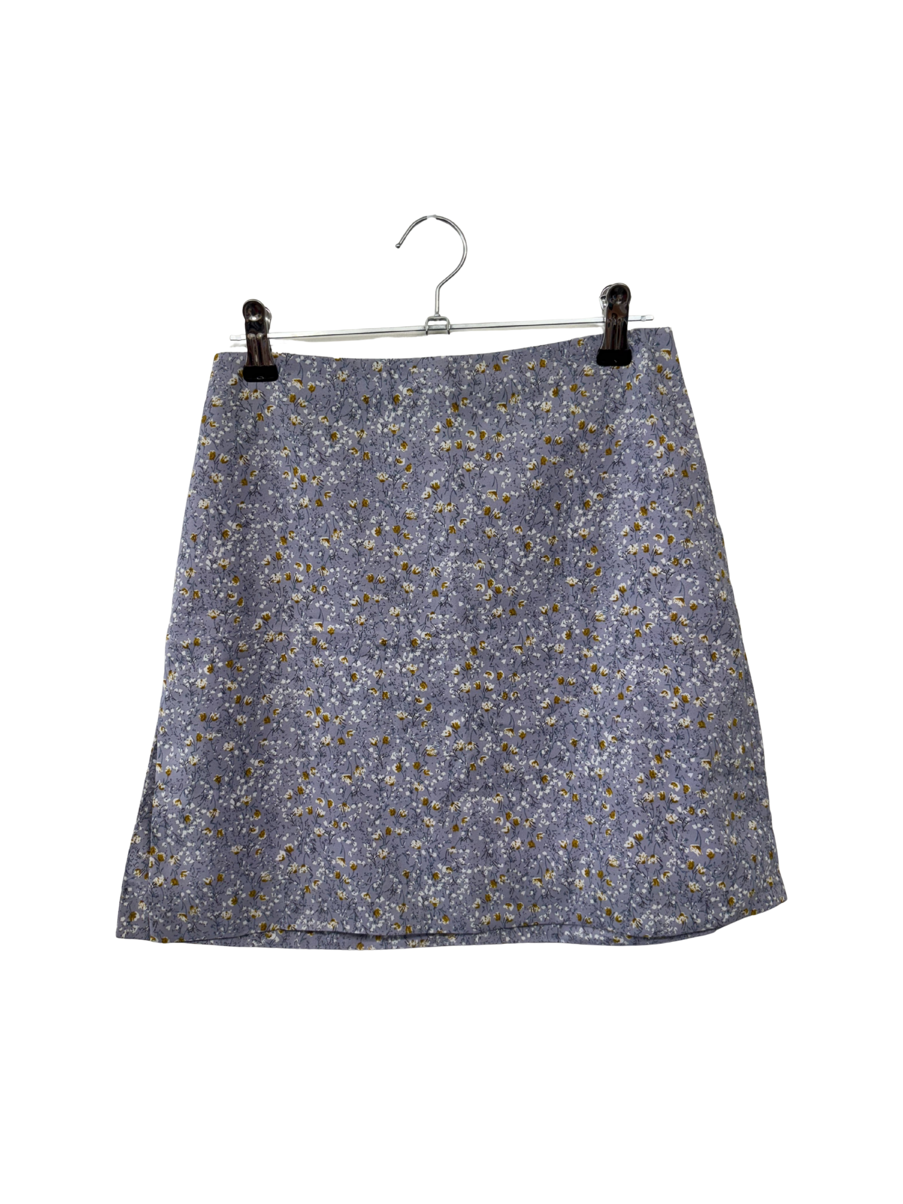 Purple & Yellow Floral Print High Waisted Short Skirt