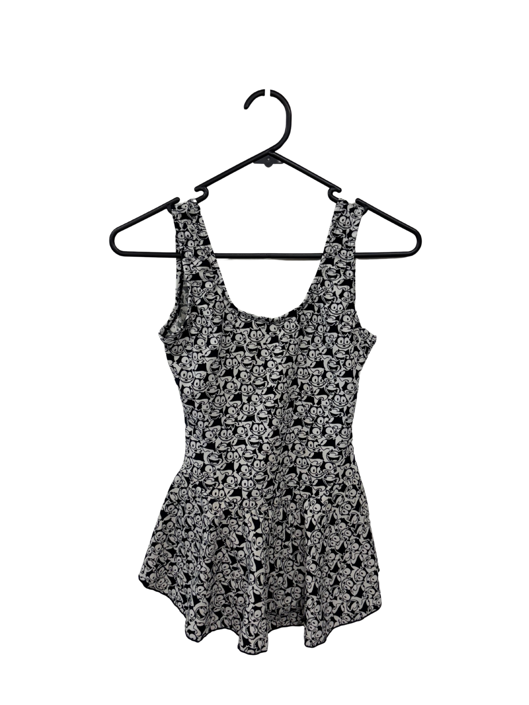 White & Black 'Felix the Cat' Patterned Sleeveless One Piece With Skirt