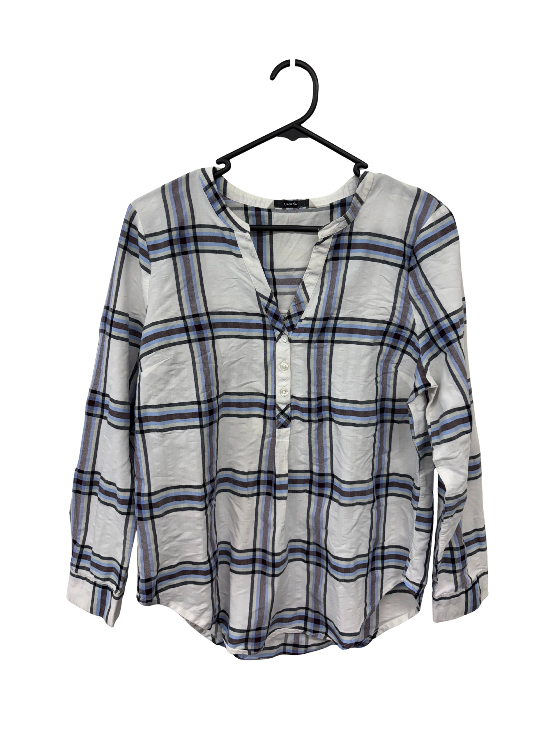 White, Blue & Black Checkered Long Sleeve Shirt with Buttons
