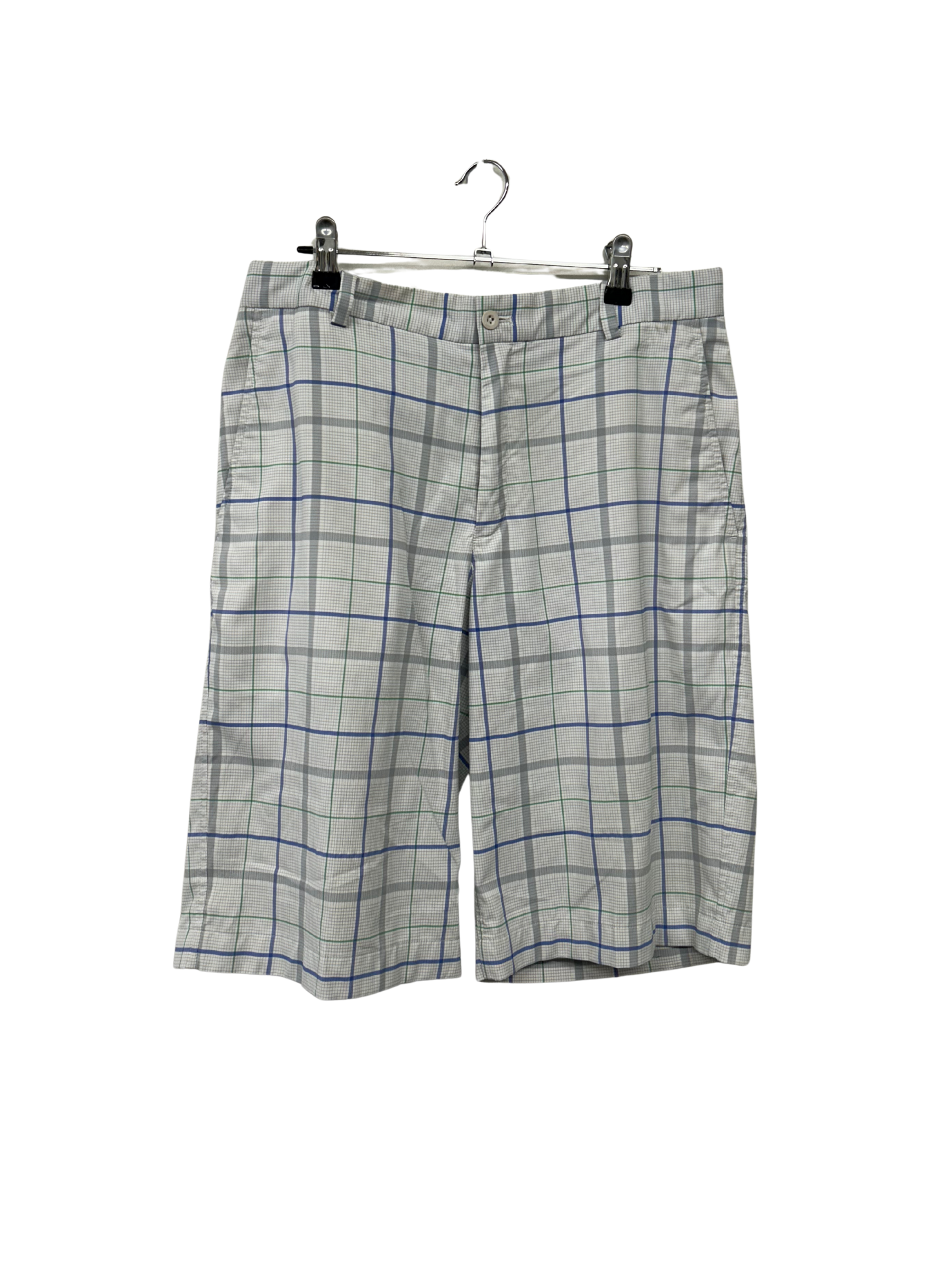 White, Blue & Green Plaid Golf Shorts
